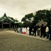 大阪的丰国神社在大阪城(大阪城公园)内,作为京都市丰国神社的别社创建。这里主要祭奠日本战国时代的枭雄——丰臣秀吉,他于公元16世纪完成了统一日本的大业,结束了战乱的局面。丰臣家族灭亡后,这座神社随之遭到毁坏。到公元19世纪的末期,神社才得以重建。