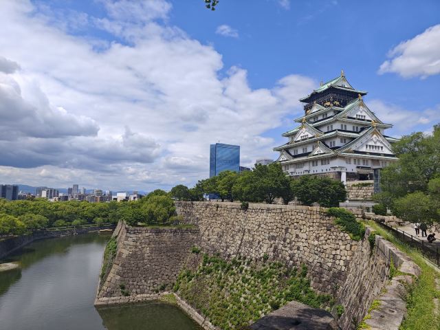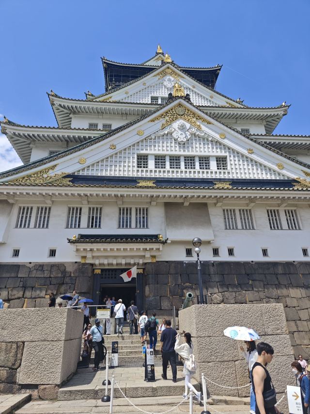 大量巨石堆砌的石垣是德川大坂城固若金汤的象征。护城河宽达70-90米,其两侧耸立的石垣,高于20米的地方随处可见。来参观的游客无不惊叹建筑的雄伟。