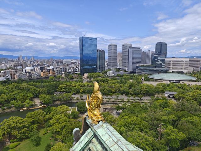 公园内耸立的大阪城天守阁非常有名,登上大阪城天守阁的顶层,可以尽情俯瞰城市全景。