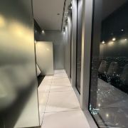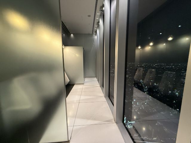 卫生间:洗手间区域也是镶有玻璃的观览空间。在洗手台前透过镜子观赏到的景色也有别具一格的趣意。