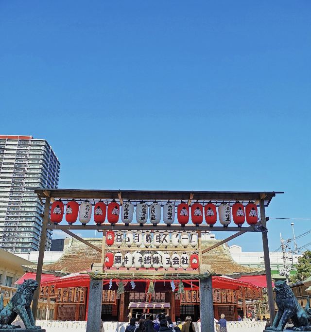 大阪的生意人几乎都知道今宫戎神社。该神社于公元600年由圣德太子下令建成,每年都会有上百万游客来这里向戎神(即财神,又称“惠比寿”)祈求,保佑生意兴隆。当十日戎节到来时,人们会买一些点缀着吉祥物的圣竹枝,并祈祷自己的生意一帆风顺。许多人选择在1月9日到11日期间来这里,特别是十日戎节的当天(1月10日),这里更是热闹非凡。