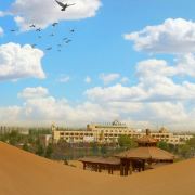 5分 超棒大沙头生态文化旅游区地处蒙、陕、宁三省交界,是著名的毛乌素沙漠源头。大沙头群峰耸立、沙丘突兀,高度可达50米,景区内还有不少绿林,附近有人工凿就的水库和草原,再加上绮丽多彩的自然风光,古老而浓郁的民族风情造就了这里奇特的大漠景观。旅游区是以沙漠温泉为主体,以蒙古族风情文化为依托的西部沙漠运动大本营。游客在这里可以欣赏大漠美景,进行沙漠竞技、沙漠探险等沙漠休闲娱乐项目,还有篝火晚会、马术表演、文艺演出等精彩丰富的文化活动,游客还可以在这里玩玩滑沙,骑骑马、骑骑骆驼,玩一把真人CS。如果是夏季来到景区,还可以参加这里的水上运动,如:水上滚筒球、水上碰碰车、水上自行车以及划船等,这些项目都需要另外付费,费用在40-60元/人不等。这里每周都有射箭、摔跤、攀岩、沙漠接力赛等赛事活动。每年的收获季节,游客还可以来到景区的采摘园,采摘新鲜的瓜果蔬菜。景区在每年的4-10月期间,经常会举办各类旅游节庆活动,活动充满了浓郁的蒙古族风情和西部大漠粗犷洒脱的风范。景区的面积比较大,景区提供了观光车,到达景区内的各个景点(不包含在门票内)。