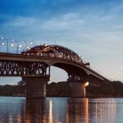大桥采用箱型桁架结构,最高点距水面64米,允许大型船只通过。桥梁的设计和建设体现了当时的工程技术水平,后来为了适应交通需求和安全标准,进行了多次加固和维护。