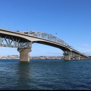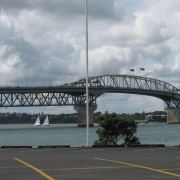 奥克兰海湾大桥连接着奥克兰繁忙的港口怀提玛塔海港南北两岸,大桥建于1959年,全长1020米,离海面高43米,是奥克兰的代表性景观。