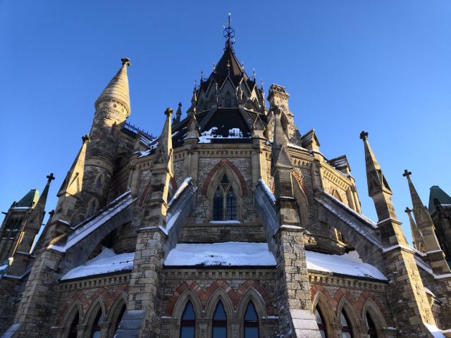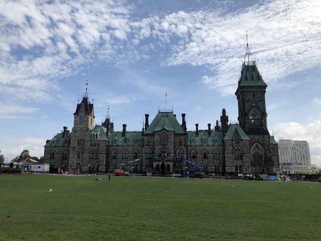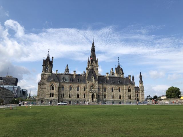 位于国会山的国会大厦是渥太华乃至整个加拿大的象征,也是目前加拿大政府及参议院的所在地。夏季每天进行的卫队换岗仪式和灯光秀为这个加拿大非常有名的地标建筑增添了历史的沧桑感和与时俱进的活力。永不熄灭的百年火焰、开阔的广场、高耸的和平塔和栩栩如生的雕塑,以及对公众开放的国会大厦常年吸引来自世界各地的游客。