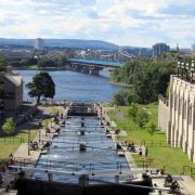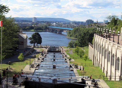 5分 超棒这条河流从金斯顿到渥太华全长200多公里,是19世纪的重要工程。我们从渥太华美术馆后面的山坡上爬上去可以俯瞰运河在渥太华全貌。河的南面就是渥太华,可以看到国会山的背面,河的北岸是加蒂诺,法语区。我们还看到当地人通过水闸把游艇一级一级放入运河。