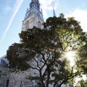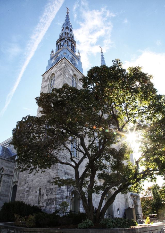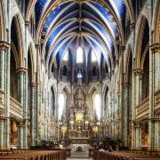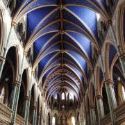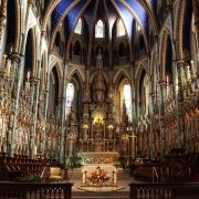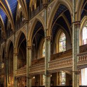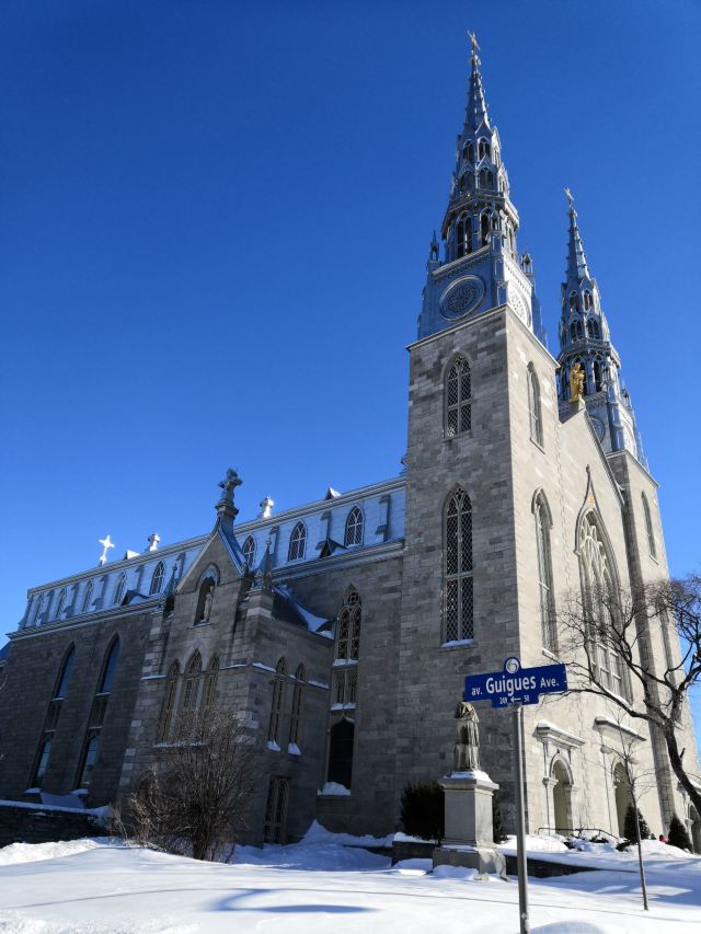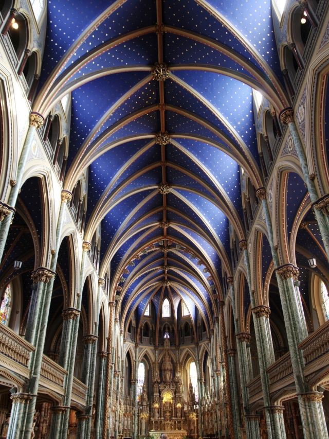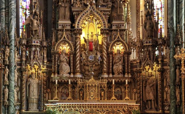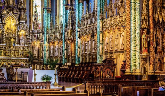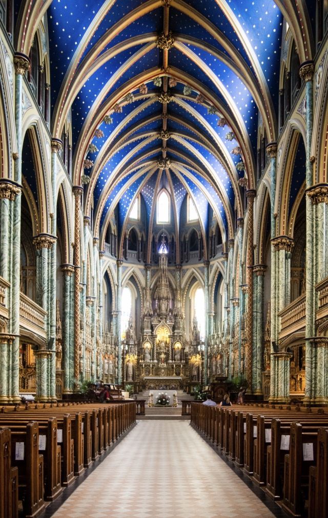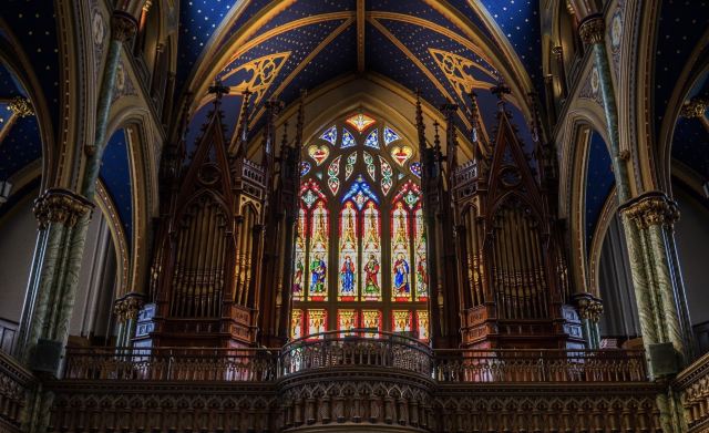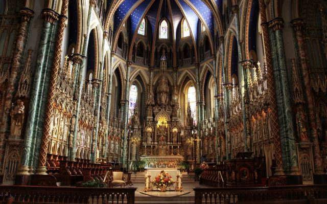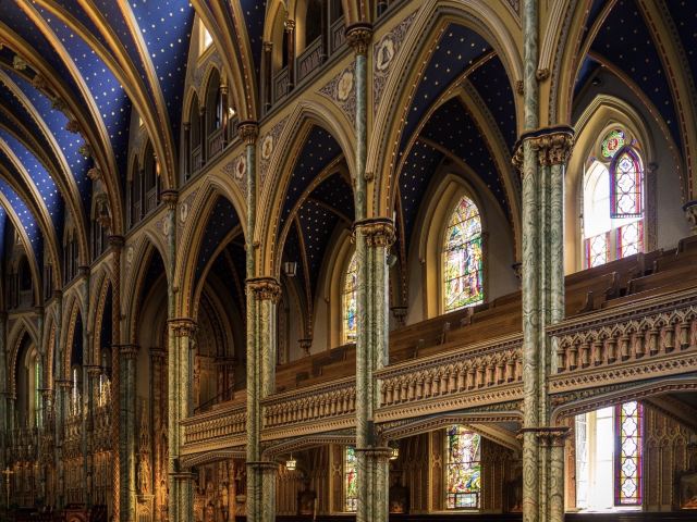 Notre Dame Basilica始建于1839年至1885年才完成,整个建筑宏伟,令人印象深刻的两座高塔、教堂内部的柱子、墙壁上的雕刻以及圣人雕像等,都是19世纪艺术家的精心之作。教堂裡的彩绘玻璃更是精美绝伦,在不举行弥撒时,观光客可入内参观。在教堂入口处可以领取一份小册子,里面概述了许多教堂内的特别之处,包括精细的木雕和耀眼的紫蓝色天花板。