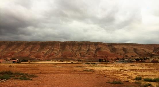 七点半,踏上了去沙漠门户Ouarzazate的行程。道路两边的景色由小麦地渐渐变成荒地,一簇簇的蓬草像苔藓一般匍匐在地上。最后变成光秃秃的山坡。