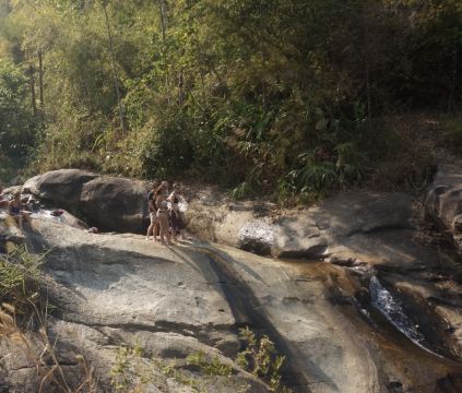 美茵瀑布位于拜县美茵寺的旁边,有一条小路可以通行。有来自世界各地不同肤色不同种族的游客到这里玩耍,嬉水。夏天里泰国烈日炎炎,到这样一个清凉之地可以避暑,尽情的玩耍。瀑布的规模比较小,跟国内的一些大型瀑布没有办法比,但是也可以去欣赏一下,有田园风情。