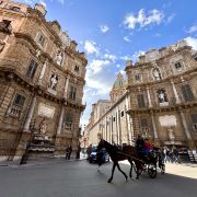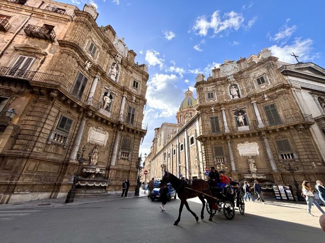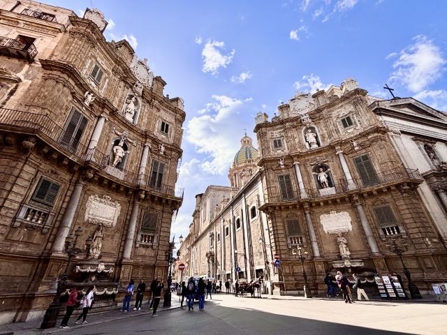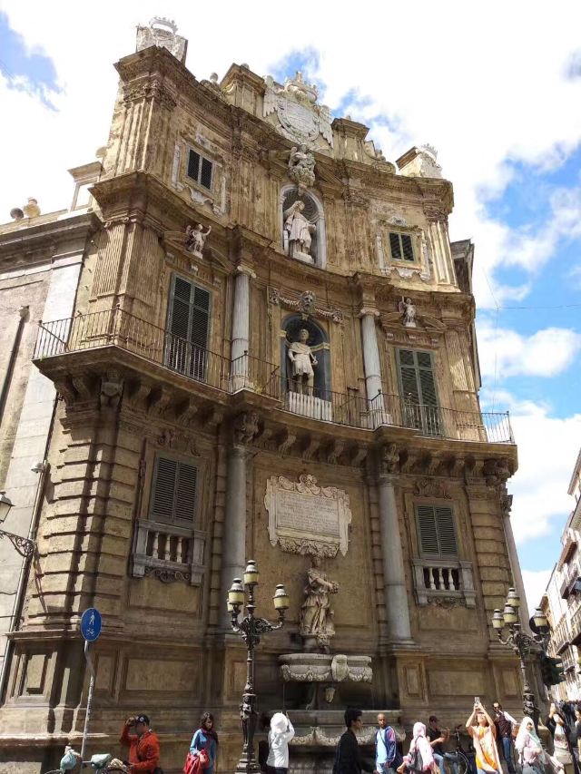 四角广场是巴勒莫老城的中心,位于Emanuele大街和Maqueda大街的交叉口,将老城的名胜古迹分割成了四个区域。