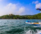 Pangandaran Beach位于印度尼西亚爪哇岛西南海岸,是一个以其自然美景和多样化活动而闻名的旅游胜地。作为爪哇岛上较受欢迎的海滩之一,庞岸达兰吸引了大量国内外游客前来享受阳光、沙滩和海洋。海滩以其绵延的白色沙滩和清澈的海水而著称。海滩两侧被绿色的山丘环绕,形成了一个天然的海湾,提供了一个理想的游泳和水上活动场所。游客可以在这里享受游泳、冲浪、划皮艇等各种水上运动,或者简单地在沙滩上放松,享受宁静的海滨时光。除了水上活动,海滩也是一个欣赏日出和日落的理想场地。每天清晨和傍晚,海滩上都会聚集许多游客和摄影爱好者,捕捉天空和海洋交织的美丽瞬间。