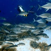 巴里卡萨岛也是许多潜水爱好者的汇集地,它的一大特色就是可以漂在水中俯瞰巴里卡萨大断层。从水下看,整个珊瑚岛好像一根千米多高的柱子矗立在海底,露出海面的部分就是巴里卡萨岛。在这里潜水你可以看到珍贵稀有的黑珊瑚礁,它们环绕着断层生长,珊瑚呈玫瑰形状,格外巨大且艳丽。海底还可以看到成群的热带鱼及逗趣的小丑鱼等美丽的海洋生物。还有缤纷的珊瑚、各式的鱼群等等,让人目不暇接,流连忘返。