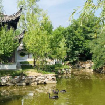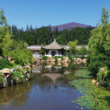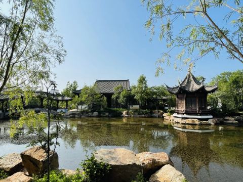 盘锦江南风情园是国家AAA级旅游景区,国家文化产业示范基地。景区汇集中国江南园林具有代表性的苏州拙政园、留园、沧浪亭等典型景点特色整合建造而成。项目大胆创新,将园林与翠霞湖在设计理念上融为一体,相互衬托,各显异彰。园内集中了榫卯技术、绘画、徽雕堆雕、匾额、楹联、书条石、雕刻等古建筑艺术,配以园林花木,寓意深刻,叠石寄情,具有宋、元、明、清时代的建筑风格和建筑水平。园中运用各种造园艺术技巧和手法,将亭台楼阁、泉石花木组合在一起,构筑精致、艺术高雅、文化内涵丰富,园区既有湖光山色、烟波浩淼的气势,又有江南水乡小桥流水的诗韵。充分体现出江南文化的深厚底蕴。