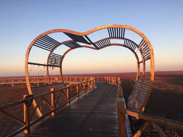 4分 满意国庆过来这里充满了国庆的氛围,到处都插着国旗,有一种浓浓的爱国情和节日氛围。红海滩这里的色彩确实是挺特别的,不过实地看没有那么震撼