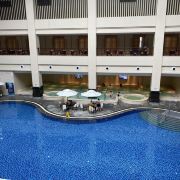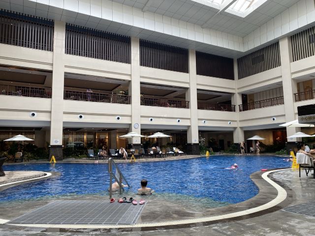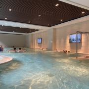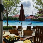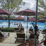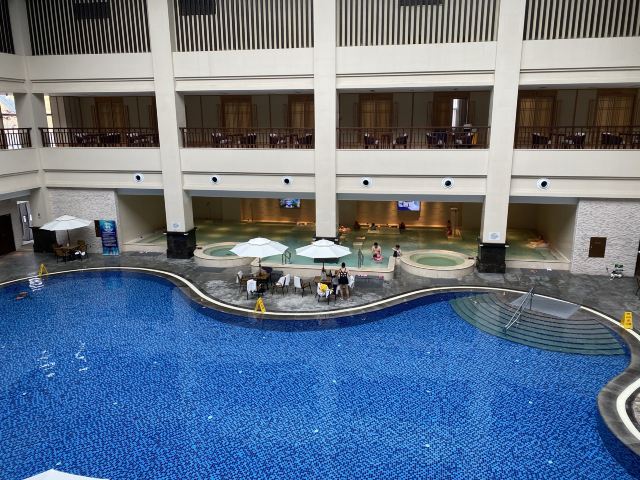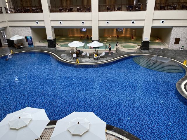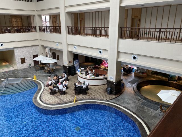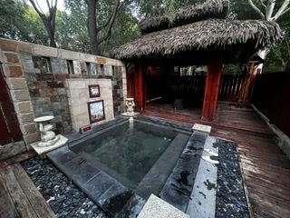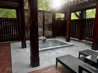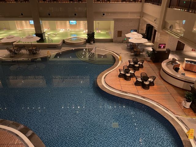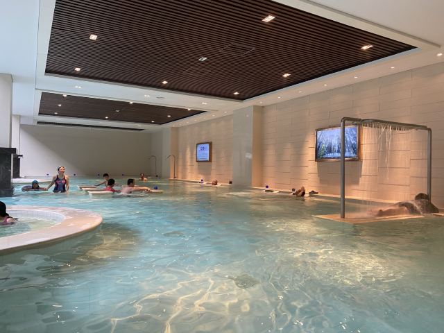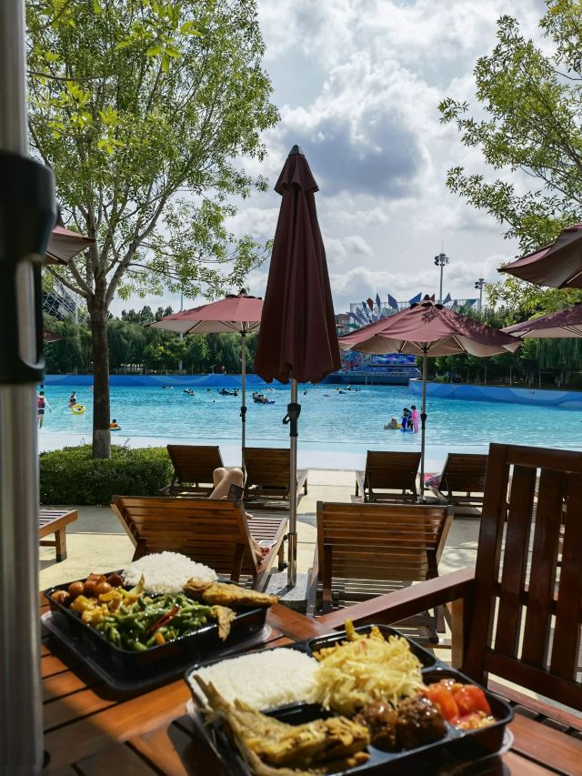 5分 超棒买温泉赠送了水上乐园,用的通用票,很实惠。温泉里提供储物柜,拖鞋,浴巾,淋浴的地方洗漱用品都有,连擦脸的都有,并且免费,还是很干净卫生的,温泉的种类很多,有各种效果的,还是早点去比较好,可以多体验一下,其实不太好意思进有人的,这里还有室内水上乐园,不过更适合小孩子。室外水上乐园这有非常丰富的游乐设施,满足不同年龄的需要,今天去,都没有碰到排队的,想玩就上,玩的特别开心,去玩的话最好自带泳圈这里卖,最便宜49,泳帽39,手机防水袋19,水上乐园玩懒人河可以租皮筏,有小孩的可以自带些水果,水,因为我有看到有人带进去了。最好去的时候买带午餐的通票,发现这才是比较划算的,在温泉的二楼,自己买吃的还是很贵的,不如好好吃一顿了。