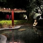 红海湿地温泉乐园(盘锦天沐温泉度假城)室外温泉区占地面积近40000平方米,分为碧海琼岛区、原汤泉区、五行溶洞区、锦鲤嬉戏区等,共有各具特色的温泉汤池50余池。