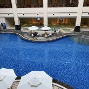 餐饮:营业面积共4000平方米,分为4个区域,A区、B区、C区、D区,可容纳600多人同时就餐,各区温度均达到25℃。菜肴以盘锦地方特色、原味海鲜、烧烤铁板、日式生吃、熏酱烧腊、中西点为主,倡导“自然、养生、特色、尊容” 的经营理念。自助餐包含早餐、中餐及晚餐。 早餐:07:00-09:00 儿童19元/人 成人39元/人午餐:11:30-13.30 儿童59元/人 成人99元/人 晚餐:17:00-20:00 儿童59元/人 成人99元/人