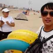 网红拍照那面大礁石边人少,尽量去那面玩,退潮还可以抓小螃蟹、小鱼,记得带个小桶,孩子玩的不亦乐乎!