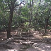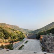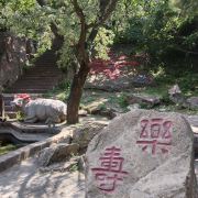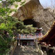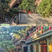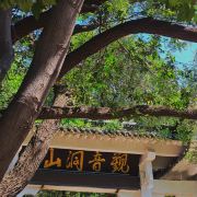 若从索道下站继续前行,可按景点指示牌前往观音洞风景区。途中经过乾隆皇帝曾走过的进香小道,是条环境清幽的石阶小路,途中还有一处滑索站,可乘仅用绳索缚身的滑索滑到对面的鸡冠山山腰(40元),相当刺激。观音洞风景区是一座开凿山崖而建的庙堂,供奉着观音菩萨,据说此地祈福很灵验。附近还有月老庙、历代高僧的灵古塔等古迹。