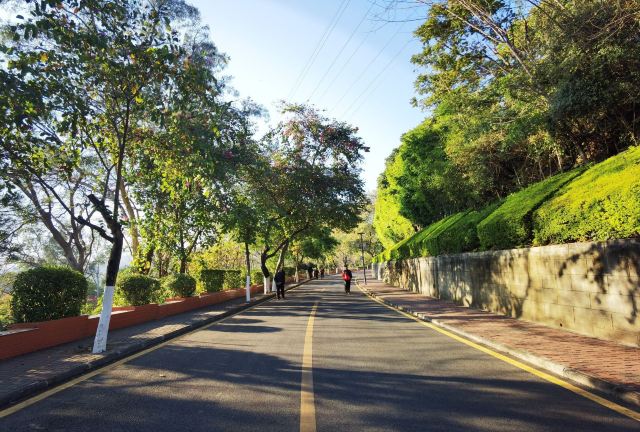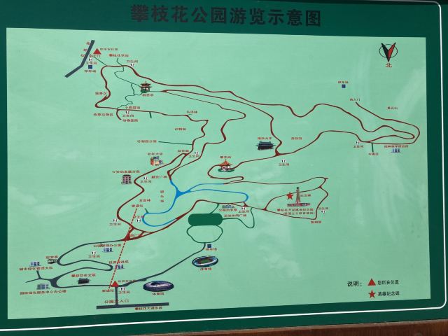 这一天的天气非常好,吃完早饭慢悠悠的往大门走。攀枝花公园是沿着一座城边山修建的。大部分都是山道,最佳游览路线在山下可以坐缆车和电瓶车抵达山顶,然后在走下山,相对比较轻松。但是,当天缆车维修,电瓶车的师傅一直没有来,于是决定干脆走上去,走到哪里算哪里。