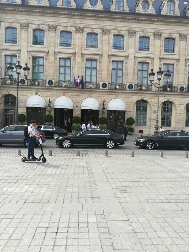 广场的北面15号就是大名鼎鼎的巴黎丽兹酒店。酒店的外观看上去十分内敛,一座在欧洲随处可见的巴洛克宫廷式建筑,只有五层高。门面也很低调,大概三四米宽,门口也没有醒目的招牌。