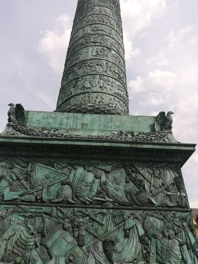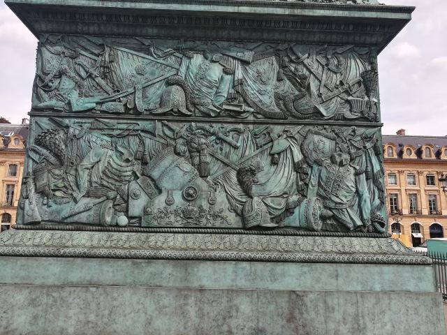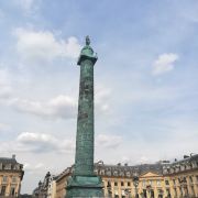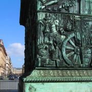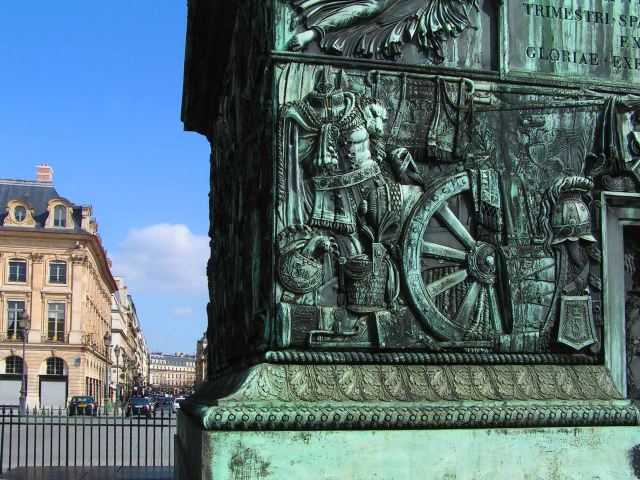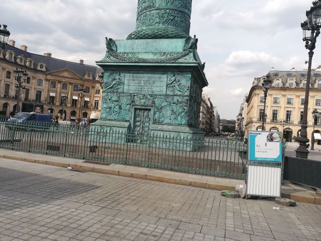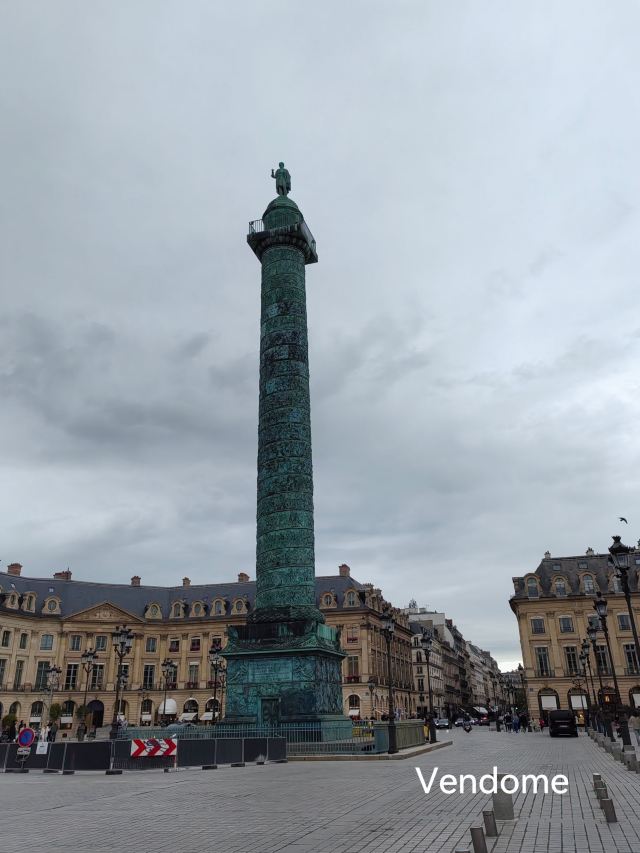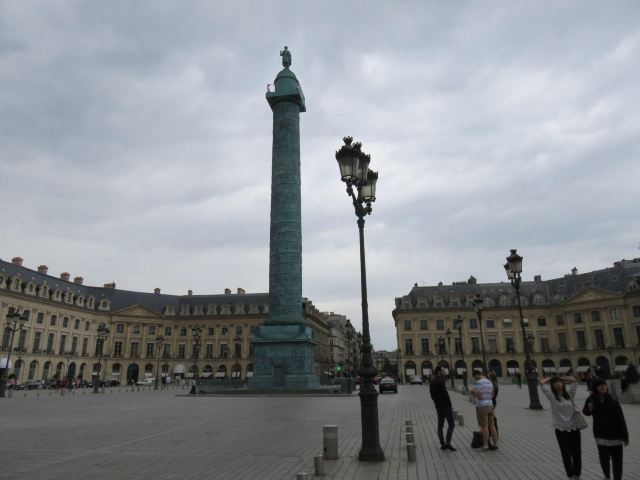 广场周边的交通非常发达,多条地铁线都可到达附近的Opera地铁站。广场本身的风格非常简朴庄重,是由两座U形大楼围合而成。广场中间耸立着44米高的旺多姆青铜柱,是用1805年在奥斯特里茨战役中缴获的1200多门炮熔化之后铸成的,雕饰着战争场面浮雕,顶上是拿破仑的雕像。