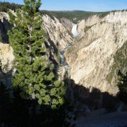 黄石大峡谷位于钓鱼桥和高塔之间,由黄石湖流出的河水,流经大约3 8公里地带所造成的险峻峡谷,就通称为黄石大峡谷。这里是黄石公园最壮丽、最华美的景色97公里长的黄石河是"美国境内惟一没有水坝的河流"。在这里,河水陡然变急,冲开四溅的水花,形成两道壮丽的瀑布,轰鸣着泄入大峡谷。
