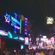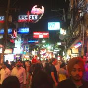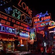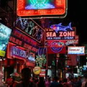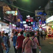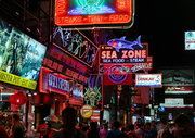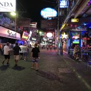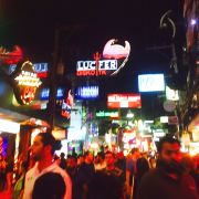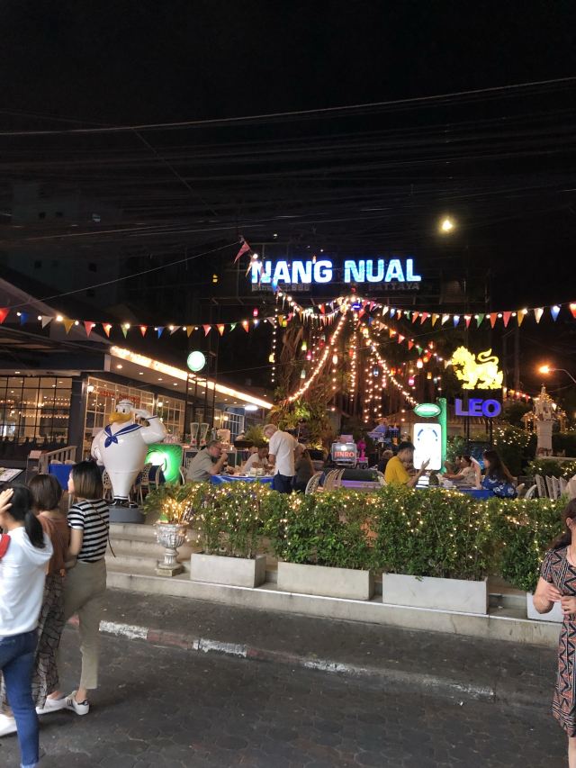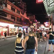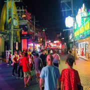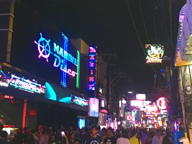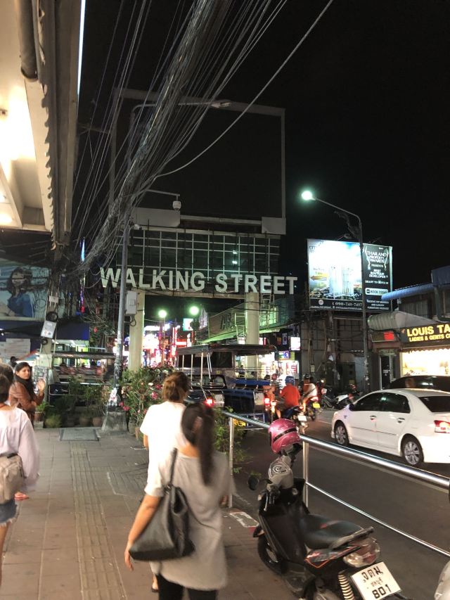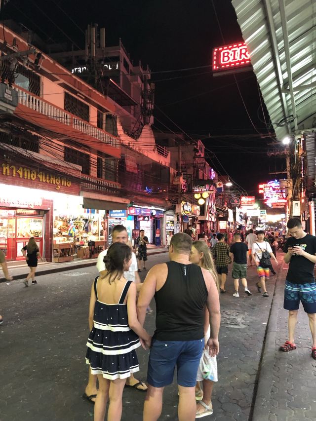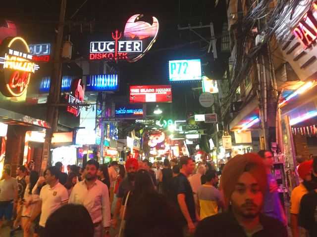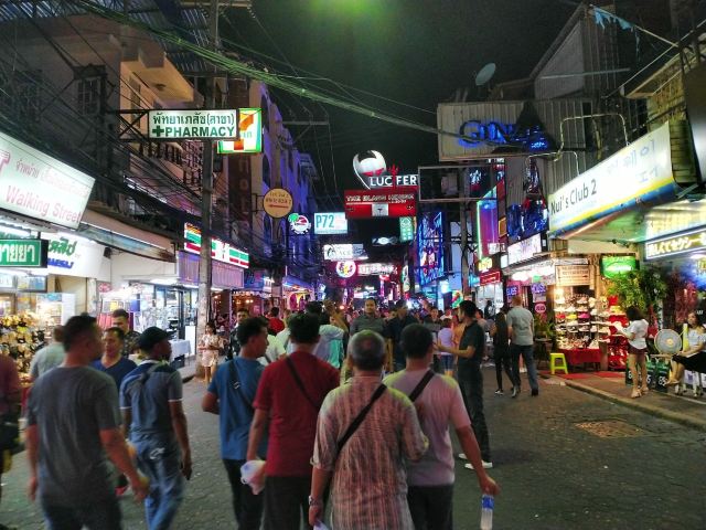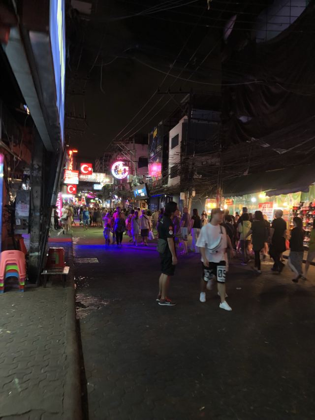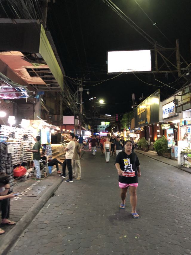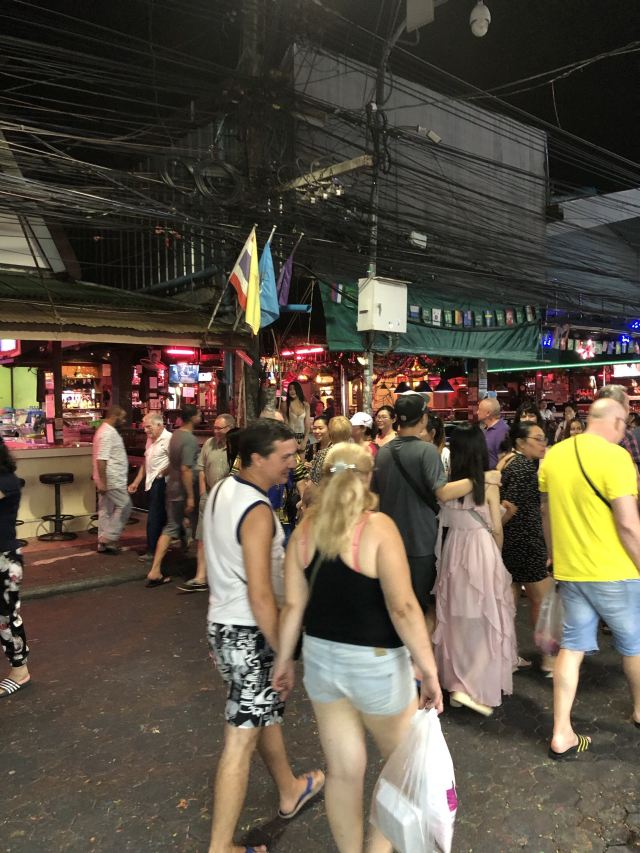 以霓虹灯和热闹程度论,这里可能远不如国内的一些知名步行街。两旁的电线杆和凌乱的电线,表现了街市建设的随意性。白天相对冷清,但一到晚上灯火通明,夜夜笙歌,还有很多Lady boy在跳舞,招揽游客,光怪陆离、无奇不有,这里是个一刻也不宁静的嘈杂世界。