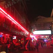 有些夜店大门口挂着厚厚的帘子,表示里面有不方便公开示人的景象,大家懂的都懂;如果你在这些店门口驻足拍照,还会被“工作人员”用激光笔照射,大家就适可而止吧。这条街两侧的小巷子里有许多小旅馆可以让游客过夜,除非大家真的感兴趣,不然就不要进去了。
