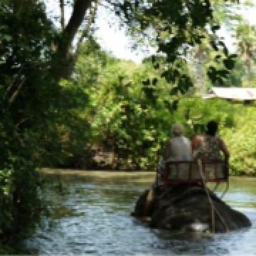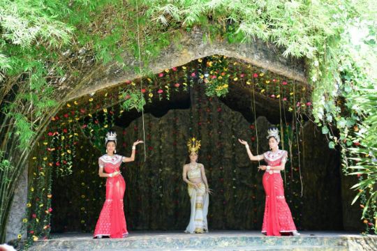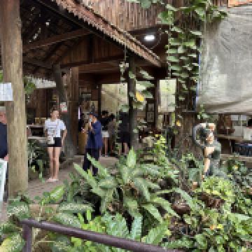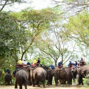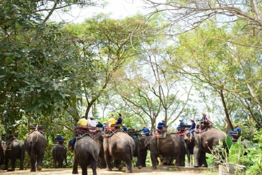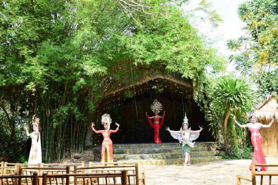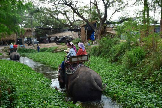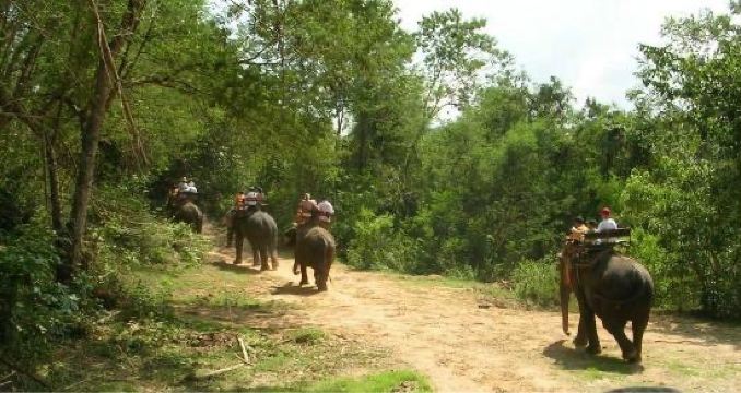 进入芭堤雅大象村,会有象夫带你摇摇晃晃穿越田野、小溪、草地和公路,骑完大象后会带你到丛林里徒步,然后去竹林边做竹筏,接着去参观丝稠场,再坐牛车返回出发地,开始享用午餐。整个行程结束后还会给大家享用水果大餐,有西瓜、菠萝、芒果等热带水果。