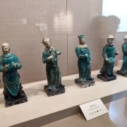 “其藏也周”陈列陶器、青铜器、玉器、瓷器、古代服饰等。西周青玉剑、西汉龙凤佩、东汉青铜摇钱树、东汉说唱俑、辽金时代镶金顶舍利佛塔、明清龙袍等都值得一看。