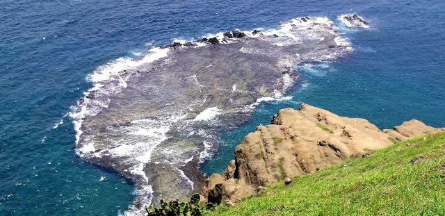 5分 超棒七美小台灣位於七美島東北方,這是今年累月累月海浪拍蝕造成的海蝕平台,形狀像是台灣的形狀,因此稱為小台灣,是遊客熱門的景點。
