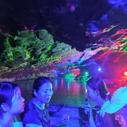 5分 超棒4A溶洞景区,规模宏大。冬暖夏凉超舒适,步道平缓好走。钟乳石造型奇特,灯光绚丽,乘船穿暗河很刺激,老少皆宜,自然奇观超震撼。