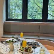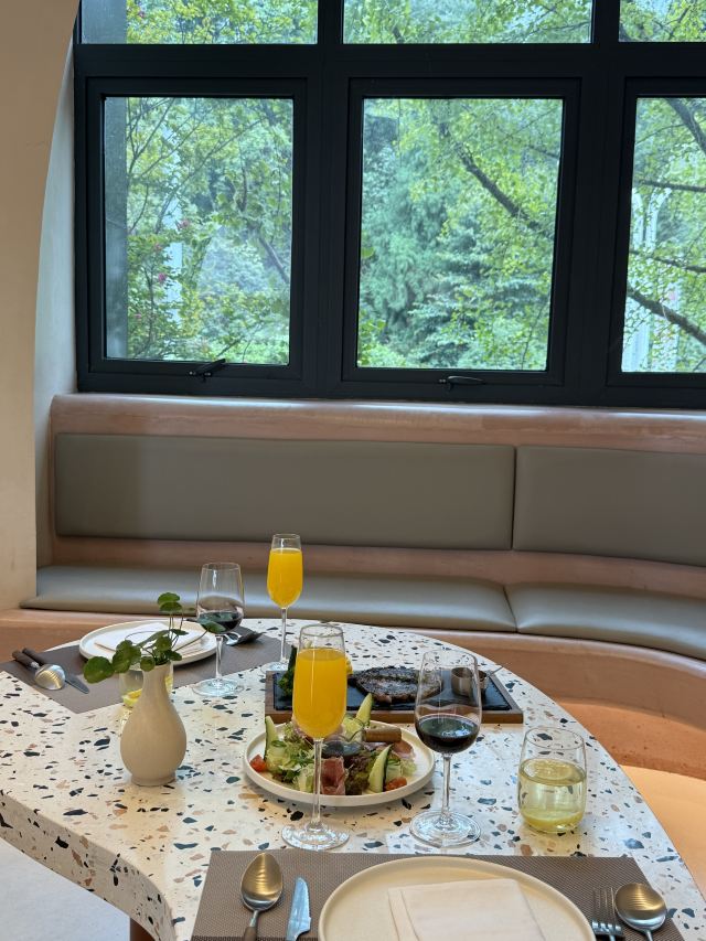 大面积落地窗,在这里点一杯咖啡,望着窗外山景,能发呆一下午。