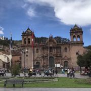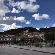 在南美洲国家,几乎每一个城市都有一个中心广场,在这里汇集了城市里较重要的教堂和一些具有历史意义的建筑,人们喜欢在广场中心的长凳上休息,跟陌生人聊天,喂鸟,看书,发呆。广场上空飘扬着一个彩虹旗,这个艳丽的彩虹旗是库斯科的市旗。