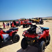 白沙丘有沙地摩托车可供租用,既能代步也可以体验一把沙地狂飙的快感。你可以自己开,也可以让师傅代开,他会带你在各个沙丘顶兜一圈,甚至从近90度的山坡冲下去,相当惊险刺激。除沙地摩托车外,也可以租沙地越野车。