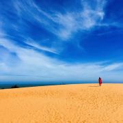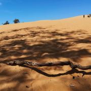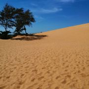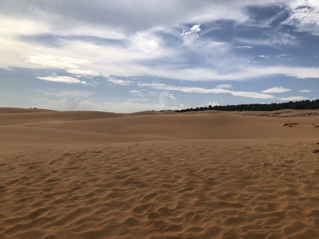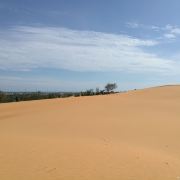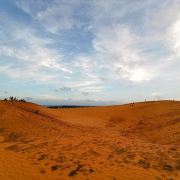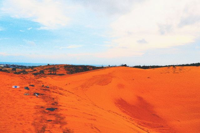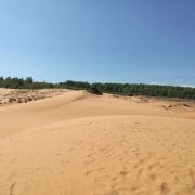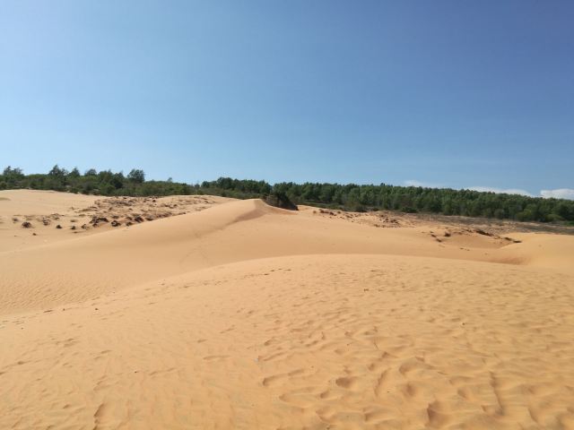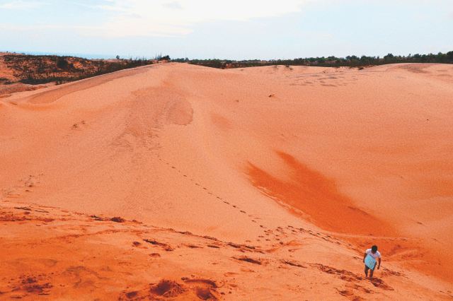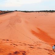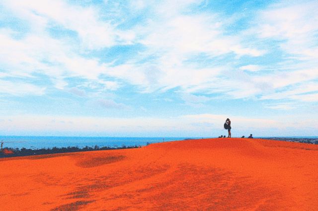 红沙丘是一处靠近海岸的红色沙丘,沙质比较柔软,脚踩在上面非常舒服,在沙丘北面和西面都有一些茂密的树林,拍照的时候可以同时拍摄到沙丘海岸树林,一边是海,一边是沙漠。