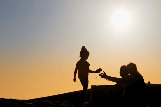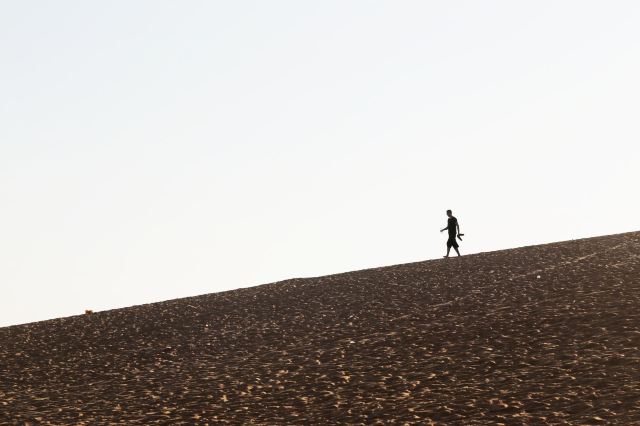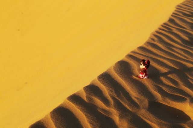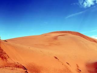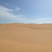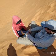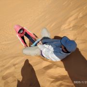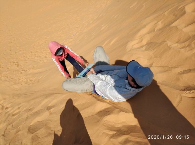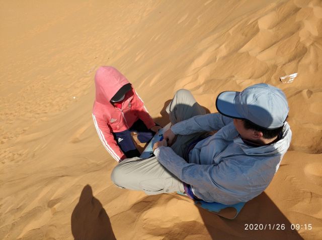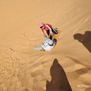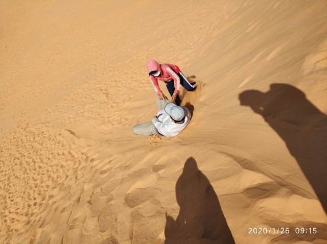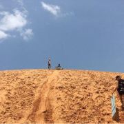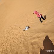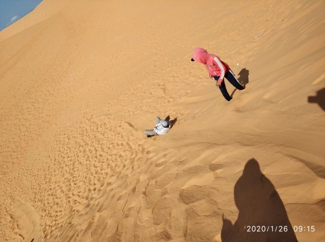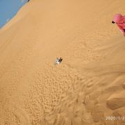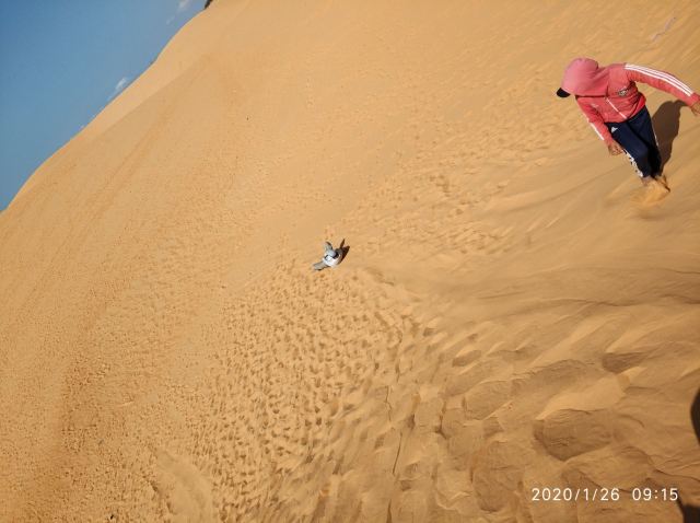 在红沙丘还可以像当地的小孩子们一样,踏在塑料滑板上从沙丘的陡坡上一跃而下,体验一下滑沙的快感。