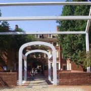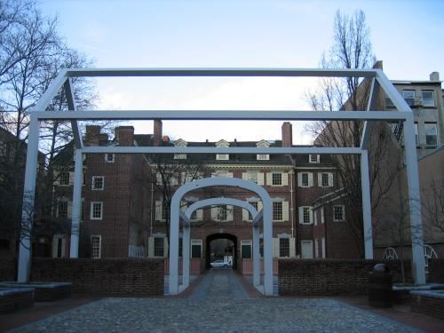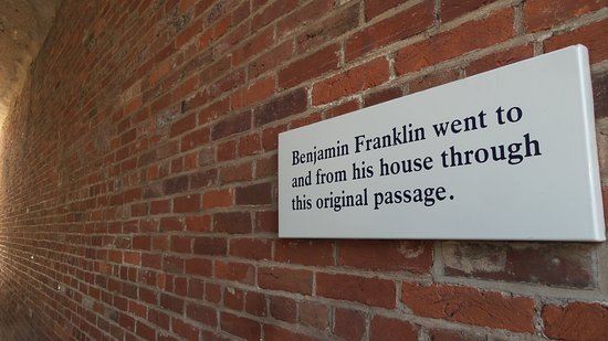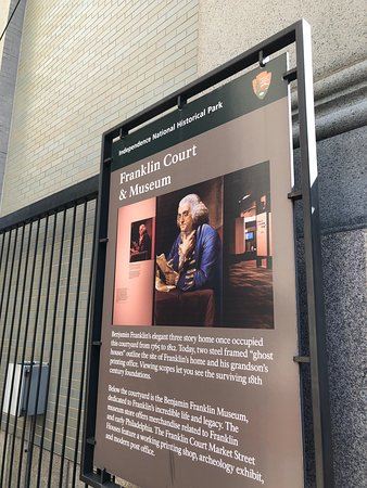 在这里,你会看见一个很奇特的建筑,这是一个白色的钢制框架,它勾勒出了一栋屋子的轮廓,其实,这就是富兰克林的宅邸原址,由于19世纪的一场大火,房子全部毁坏,人们为了保持原始的状态,便搭建了这个建筑,告诉大家,此处曾是富兰克林的故居。