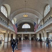 5分 超棒提前购票并预约,并不需要严格按照预约的时间到,只要在当天上午12点之前到就可以。到炮台公园的码头就能看到排队等待安检登船的游客了,队伍还挺长的,但排队挺有秩序,我们9:30左右到码头开始排队,接近11点上船,而后摆渡到自由女神所在的岛。登岛之后参观博物馆,博物馆介绍了整个自由女神建造的过程,自由女神是由法国人设计建造并赠送给美国的,在最终制作完成之前其实有很多个版本,这个历史过程看看觉得还蛮有意思的。参观好博物馆之后再到自由女神脚下近距离拍照。自由女神是美国的象征,在自由女神脚下拍照挺有纪念意义的。转一圈之后在游客中心买纪念品,在门口的凳子上坐坐晒晒太阳休息一会儿,然后坐船上另外一个埃利斯岛,那里主要是参观移民相关历史的博物馆,再从埃利斯岛登船,差不多下午3:30返回炮台公园。去的时候阴天,回来的时候出太阳了,太阳好的时候随便拍拍都很出片。自由女神内部有旋转楼梯,可以走到自由女神的皇冠上去玩,但这需要提前30天预约,非常抢手,我下手预约得晚了,没预约到上皇冠的票,可惜了,期待下次再来吧。