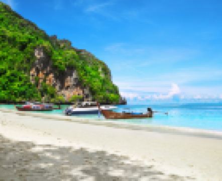 皮皮岛,又称为披披群岛或PP岛,是由北部的大皮皮岛(Phi Phi Don)和南部的小皮皮岛(Phi Phi Lay)及周围4座小岛组成的群岛,1983年被定为泰国国家公园。这是一个深受阳光眷宠的地方,柔软洁白的沙滩,宁静碧蓝的海水,鬼斧神工的天然洞穴,未受污染的自然风貌,使它成为近年来炙手可热的度假胜地之一。热门影片《海滩》中那片梦幻般的碧海晴天就是在小皮皮岛实景拍摄的。
