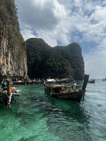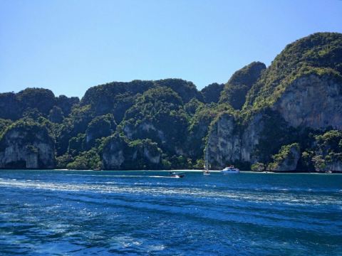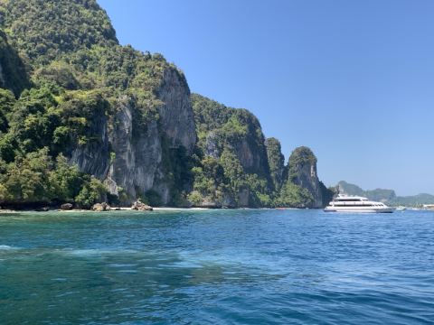 This beach is closed but you can see it from the boat. The ferry we took from Phuket to phi phi island Long Beach took a quick stop here for a few minutes for all of us to get pictures and take in the view.