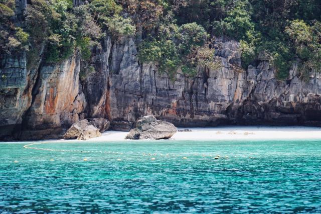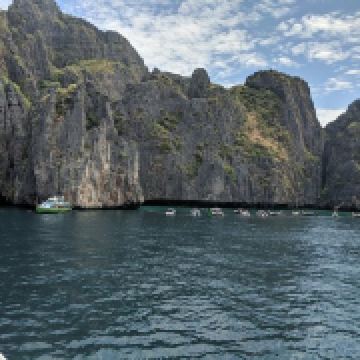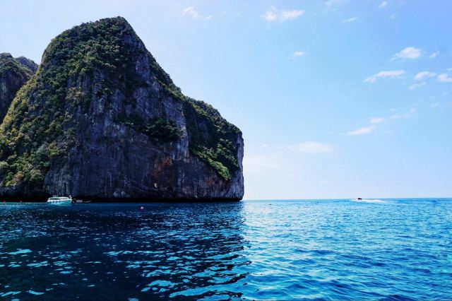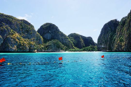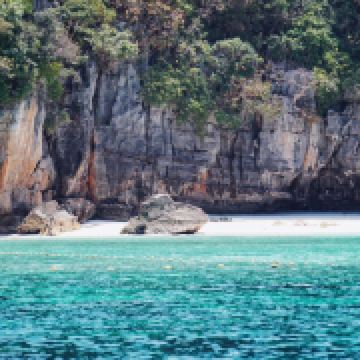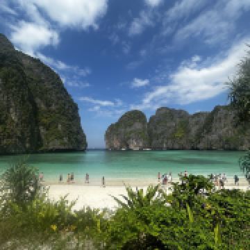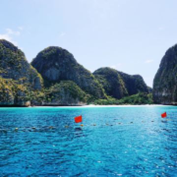 玛雅湾属于Hat Noppharat Thara – Mu Ko Phi Phi National Park,位于小皮皮岛西海岸,曾因拍摄好莱坞电影《海滩》而声名大噪。这里海水清澈,沙子洁白细腻,很多皮皮岛的经典照片都是在这里拍摄的。不过,这个海域没有珊瑚,也很少能看到热带鱼。