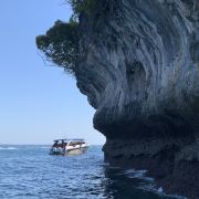 这里三面环山,沙滩虽然不大但却很白,四周上百米的绝壁气势非凡,像一只巨大的手保护着它。海水碧蓝,岸边点缀着精巧的椰树。有一种典型的热带海岛的气息,适合观景拍照和潜水。