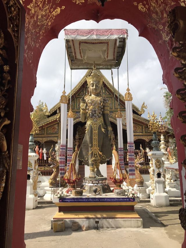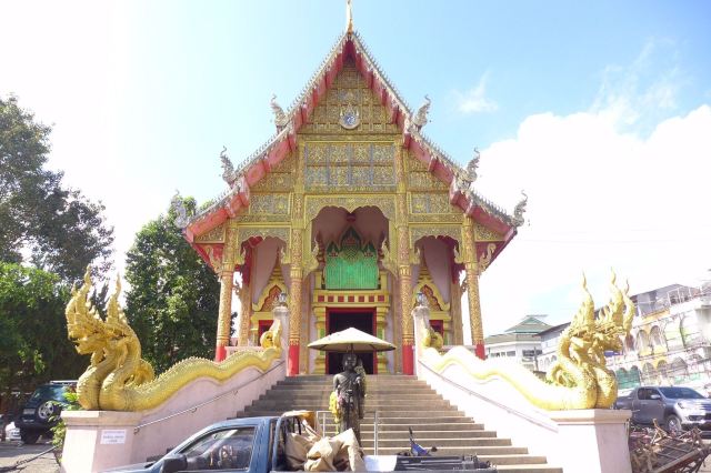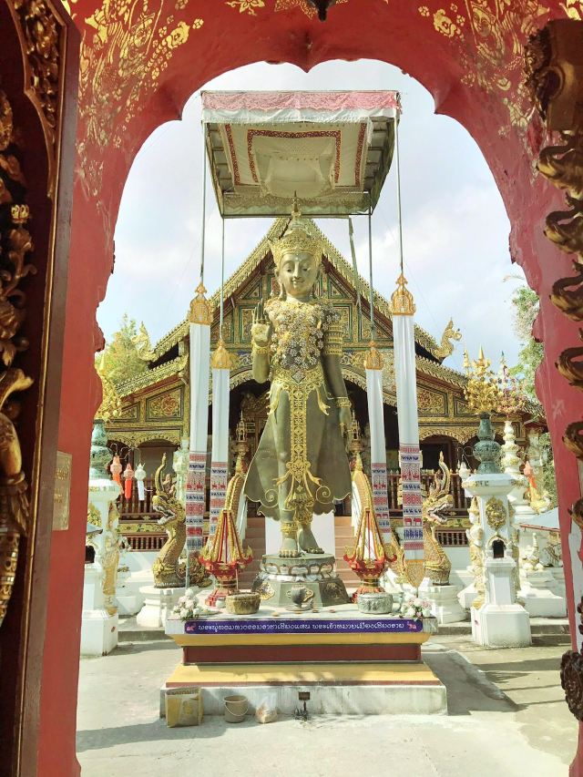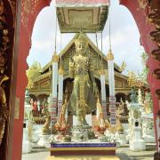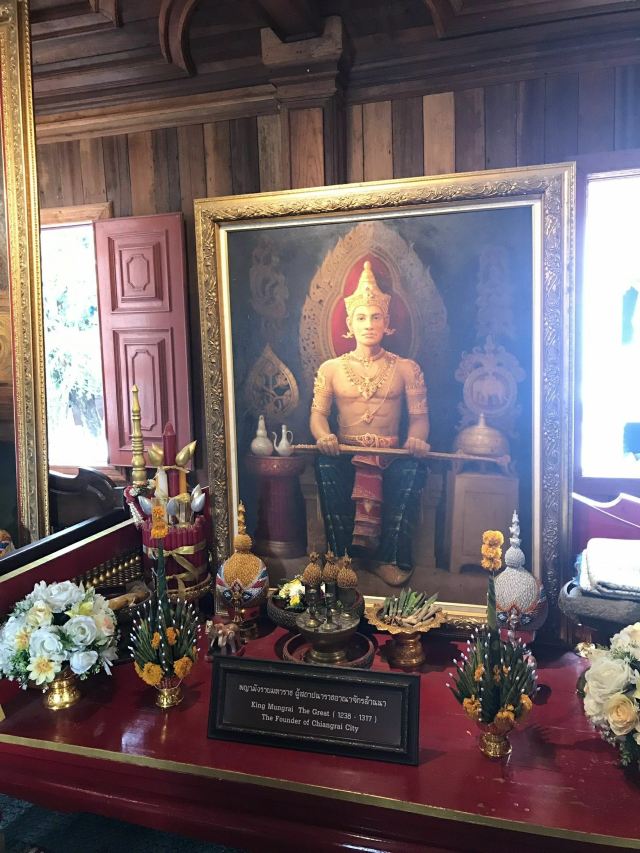 5分 超棒从帕府的金色钟塔往西走一个街区,就到了wat ming mueang。这是一座有着700多年历史的古庙,整个寺庙的环境非常的安静,庙里还供奉着清莱建成时的国王的画像,当地的老百姓对他非常的敬仰,香火十分的鼎盛。