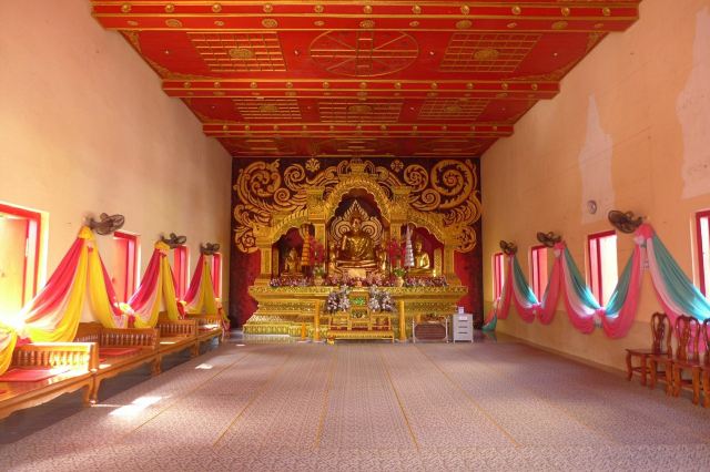 这是一座历史悠久的佛教寺庙,这座寺庙的建筑风格是泰国传统的佛教建筑,包括多个殿堂和塔楼,寺内还有许多精美的佛像和壁画。