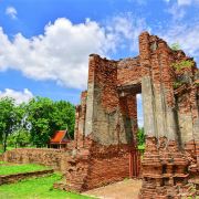 大城王朝因遭到缅甸军队的进攻而放弃这里,缅甸军队攻克大城对这里进行了大肆的破坏,现在王宫周围和内部尽是残垣断壁,建筑内的橙色砖块已经露出,并由于重力的作用而倾斜。包括曾经有一个16米高的站式立佛,表面覆盖着250公斤的黄金,缅甸军队攻陷后将佛像融化了。