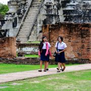 作为世界遗产,还是很有必要前来看看。斑驳的佛塔、宫殿的残柱、残墙、几座兀立的浮屠,这些古迹断断续续,却又绵绵不断,让人不禁感叹这古城的浩大,惋惜它的衰落,更珍惜它的现在。比起曼谷、芭提雅那些游人众多的寺庙来说,大城府历史公园空旷、深邃的意境,苍凉、凝重的悲壮美,更能吸引精心的旅行者驻留。