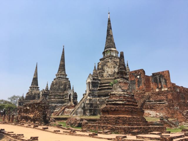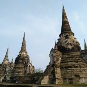 至圣佛寺遗址是原先大城王宫的所在地,有许多大城古国的遗迹。目前残存着三座灰白色的巨塔,并保留着三个国王的骨灰。据说右侧的广场本來是木制的王宫建筑,后因大城王朝滅亡而坍塌。
