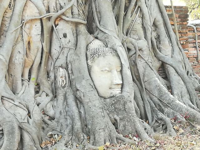 玛哈泰寺还有一个非常有名的景观,那就是位于寺庙东南角的“树抱佛头”,近距离观看,着实令人动容……愿世上少一些纷争,多一份理解和包容!